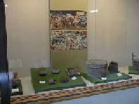 田原坂資料館の内部です。西南戦争に関する資料が、数多く保存展示してあります。銃器類・写真・錦絵・実物大の大砲模型などがあります。資料館のベランダからは、戦いの舞台となった高瀬や吉次峠を見渡すこともできます。