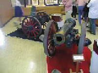 これは、実物大の大砲模型です。「西南の役 歴史紀行」によりますと、官軍の大砲109門・薩軍の大砲60門と記されています。明治10年のことですから、人や馬でこの大砲を引いていたと思われます。その当時、大砲や人馬が通る大きな道は、田原坂や吉次峠ということになります。実物の大砲の弾も多数展示されています。