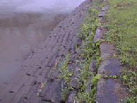 この川尻地区は、江戸時代に大変発達した町であり、当時の面影を数多く残しています。加勢川を利用した水上交通の拠点であり、近隣の町から多くの物資が運ばれました。肥後藩の蔵もあり、幕府の奉行所も置かれていたところです。写真は江戸時代に使われた「川尻お倉の船着場」です。13段の石垣が190mの長さに及んでいます。鉄道の発展とともに物資の輸送は陸上運輸になり、明治以降は使われなくなりました。