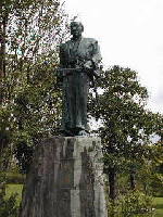 ここは熊本市の龍田にある武蔵塚公園です。二刀流で名高い宮本武蔵がねむる墓地でもあります。ここに西南戦争で薩軍と行動を共にした、熊本隊の松浦新吉郎の墓があります。細川藩士松浦十郎の長男として、熊本市北千反畑町に生まれました。子供のころ病気が原因で右足が不自由でしたが、努力して剣道や柔道の達人だったそうです。