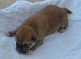 チェリーは最初の一週間、かなりやせ細っていました。しかし、最近は元気になり、散歩も行くようになりました。孫六人の内訳は、オスが三匹・メスが三匹となっています。この写真は、生後一週間です。