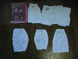 購入した図書の図案は、コピーしたものを透明ファイルに整理しています。一つの絵でも、サイズを変えて準備しています。そうすることで板のサイズに合わせることができるからです。図書一冊ごとにファイル一冊としています。本を見てすぐに捜すためです。表紙もコピーして、一番上に置けば完璧です。 |