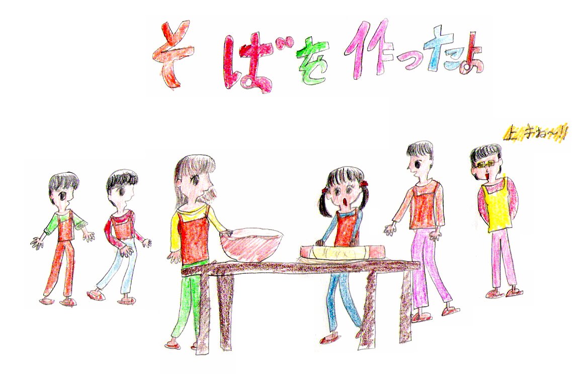 2004年11月14日、俵山〜久木野そば道場〜地獄温泉と秋の一日を楽しみました。 メンバー:林さん、今村さん、鮫島さん、萌、松男 下の絵は、萌が描きました。