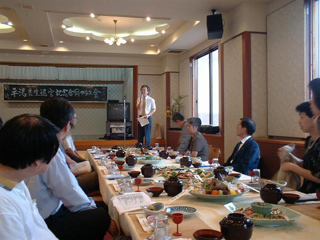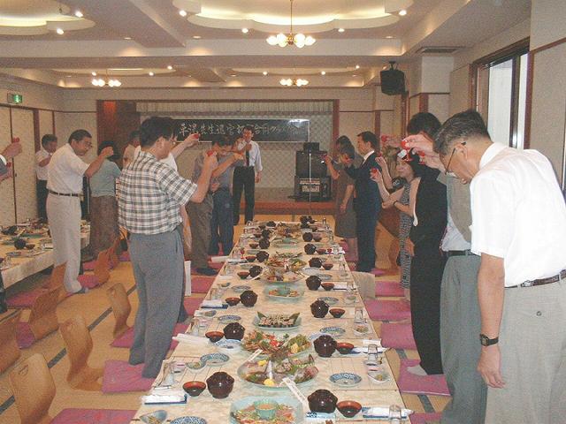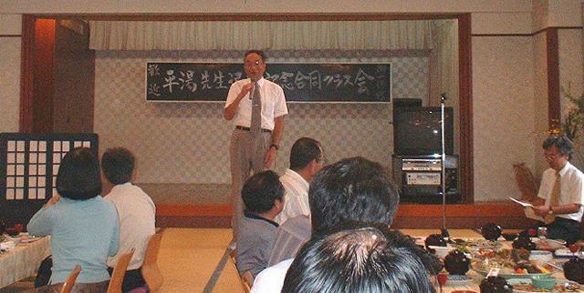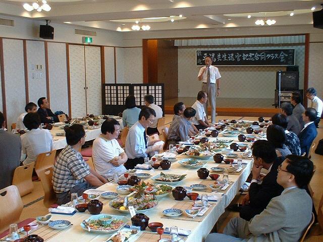 2002年8月10日平湯隆行先生退官記念合同同窓会 ●平湯隆行先生が定年で退官されました。 お世話になった昭和43年卒と昭和46年卒のクラスで、平湯先生を囲んで 合同同窓会を開催しました。 場所=平戸海上ホテル ●写真はダウンロードすることができます。 写真の上で右クリックし「対象をファイルに保存」を選んで下さい。