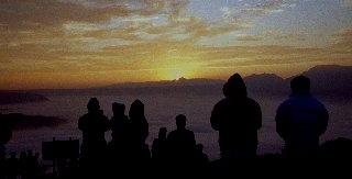 このころになるとおおよそ100名ぐらいの人が集まってきていました。軽装の人が多く、ブルブルブルブルと寒さに震えていましたが、誰もが朝焼けの美しさに感動してほとんどしゃべりもせず見とれていました。もっとも日の出の時刻を知らずに、いま出るか、いま出るかとかまえて待っていた人もいたことでしょう。