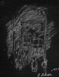 「ドームの前に並ぶ人」 スケッチ 高田