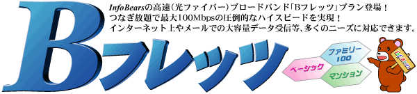 ※「フレッツ光ネクストファミリータイプ」および「フレッツ光ネクストファミリー・ハイスピードタイプ」をご希望のお客様は、InfoBearsのプラン及びオプションサービスは「Bフレッツファミリー100」へお申し込み下さい。